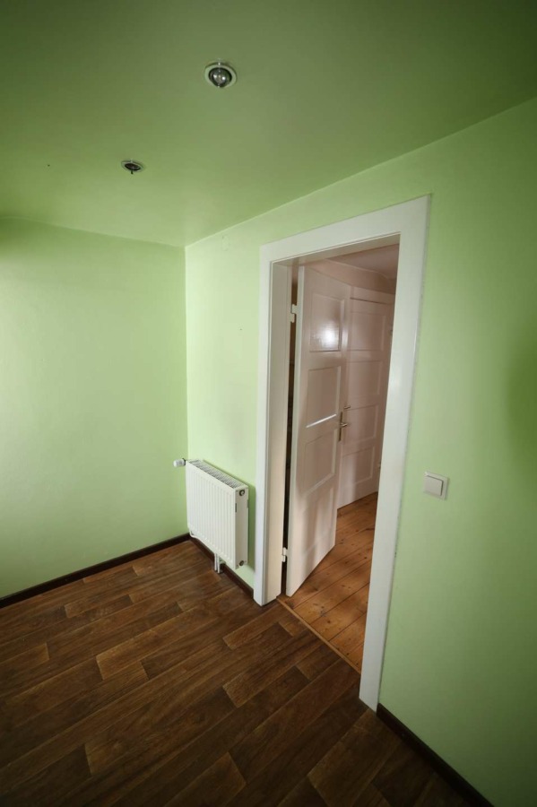 Sie betreten dieses charmante Haus in einen Flur, von dem rechter Hand das lichtdurchflutete Wohnzimmer abgeht. Ein Traum in diesem Zimmer ist der nostalgische Dielenboden, der sich in fast allen Zimmern des Hauses wiederfindet.