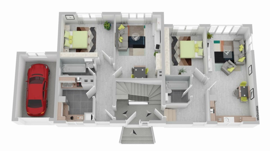 Die visualisierten Grundrisse in diesem Exposé dienen nur der besseren Darstellung der Räume, kleine Abweichungen sind möglich. Ebenso stellen die KI-Animationen lediglich eine Annahme dar, wie ggf. die Räume ausgestaltet werden können.